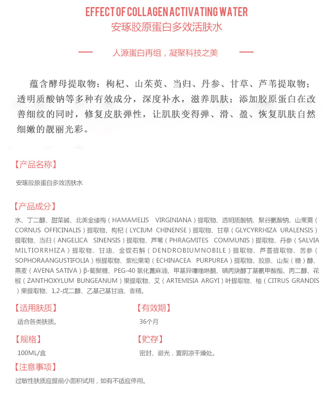 安琢膠原蛋白多效活膚水